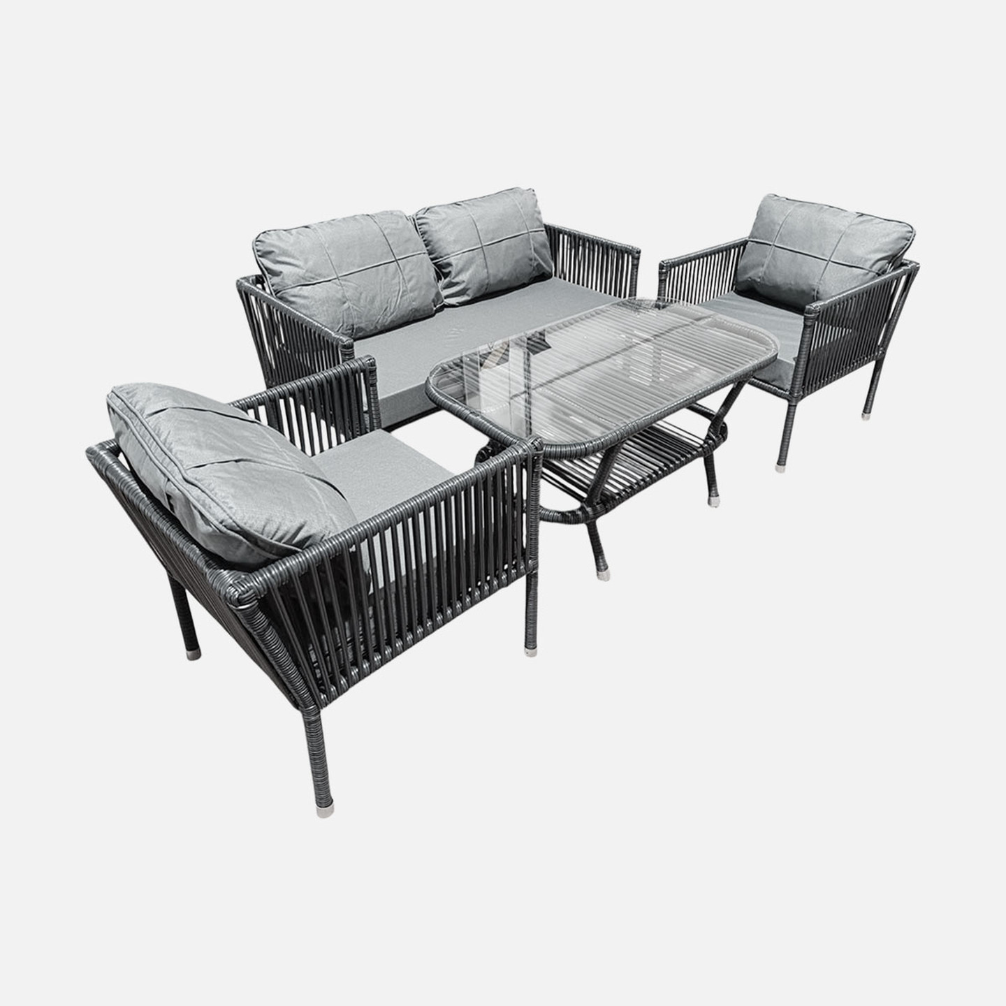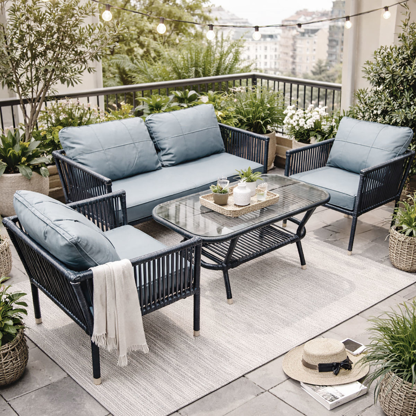 Balkon, teras ve bahçeler için özel olarak tasarlanan Oscar Çay Seti, kompakt yapısı ve modern tasarımıyla keyifli sohbet alanları oluşturur. 2+1+1 oturma düzeni sayesinde hem aile kullanımı hem de misafir ağırlamak için ideal bir çözümdür.